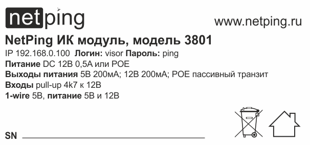 IP-адрес по умолчанию прописан на шилде на тыльной стороне устройства ИК контроллер с ETH, модель 3801: