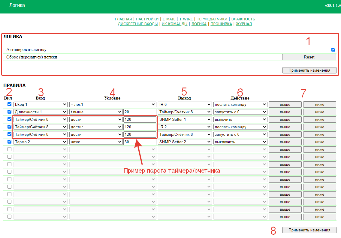 8. Применить изменения. Кнопка «Применить изменения» сохраняет запрограммированные правила логики в памяти устройства.