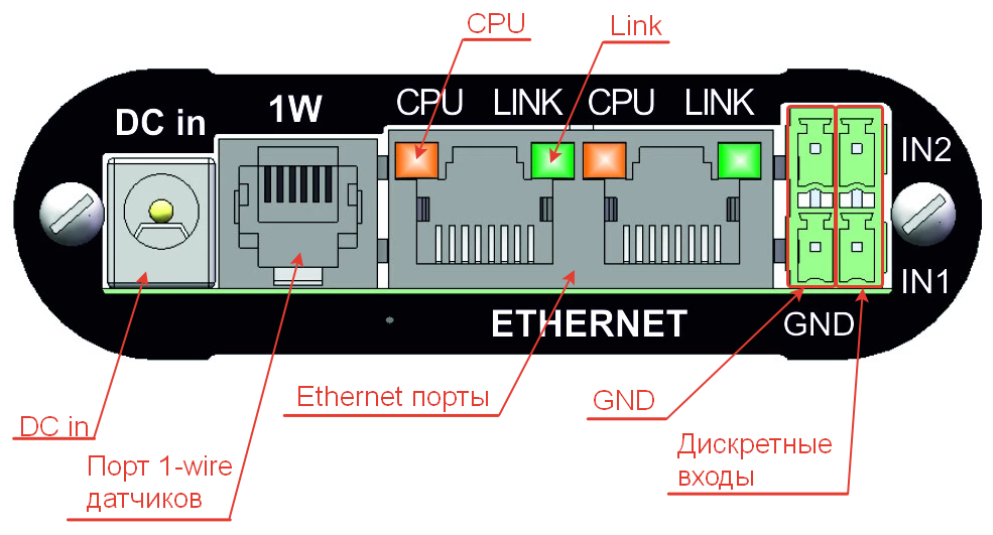 Link | Индикатор Ethernet-разъема: светится, если есть соединение; мигает при приеме пакетов. |