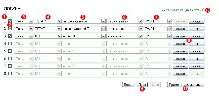 11. Применить изменения. Кнопка «Применить изменения» сохраняет запрограммированные правила логики в памяти устройства.