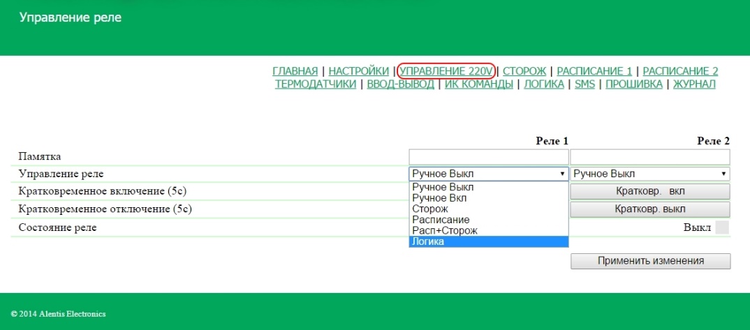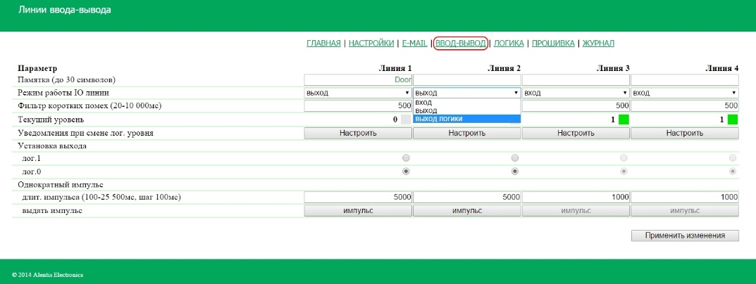 Помимо указания реле или IO линии в качестве «выхода» правила модуля «Логика», необходимо указать, что данное реле или IO линия будет использоваться совместно с модулем логики.