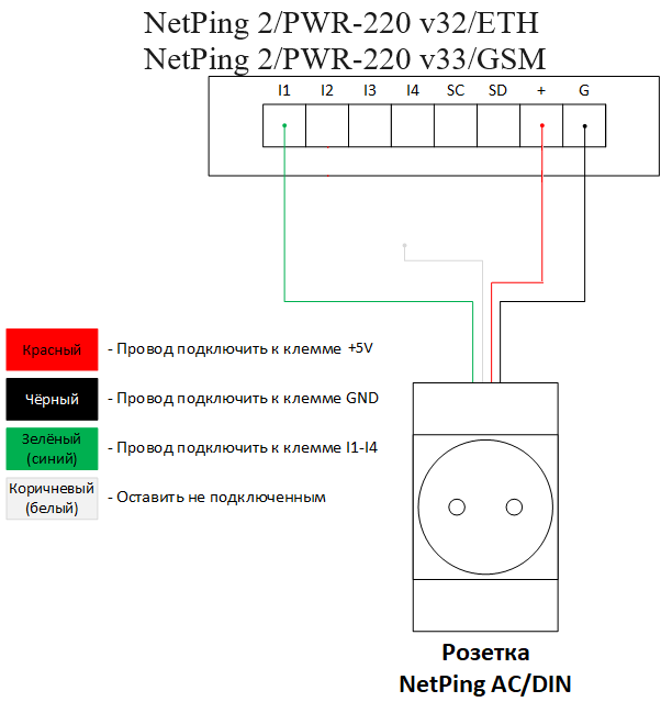 Для коммутации нагрузки в NetPing AC/DIN используется реле с нормально замкнутыми контактами. Это означает, что, если управляющий провод никуда не подключен, 220 В будет присутствовать на розетке и нагрузка будет включена.