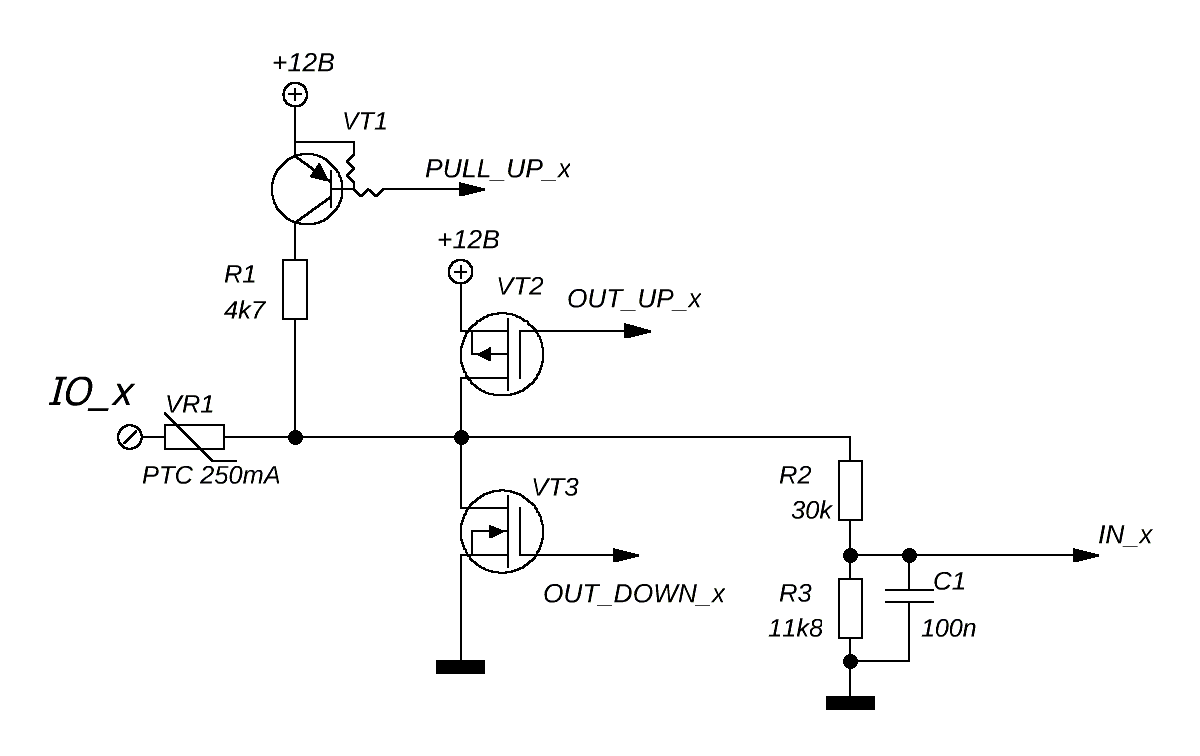 Линии Input-Output (IO) устройства могут использоваться как для работы в режиме «вход», так и в режиме «выход» для управления внешними устройствами.