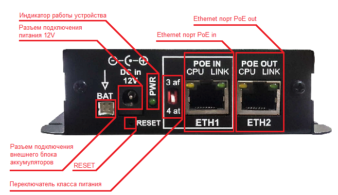 Ethernet порт PoE in | Разъем Ethernet 10/100/1000 BASE-TX (PoE неактивно на данной версии устройства!) |