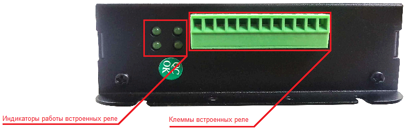Индикаторы работы встроенных реле | 4 светодиода для индикации работы встроенных реле |