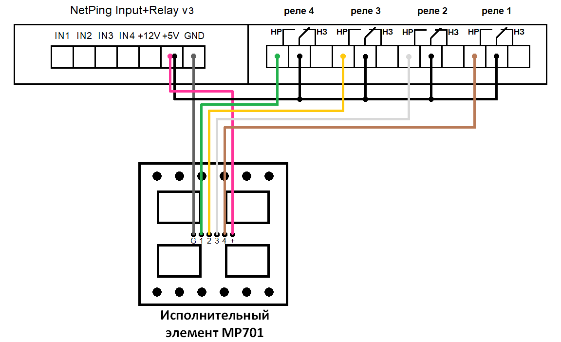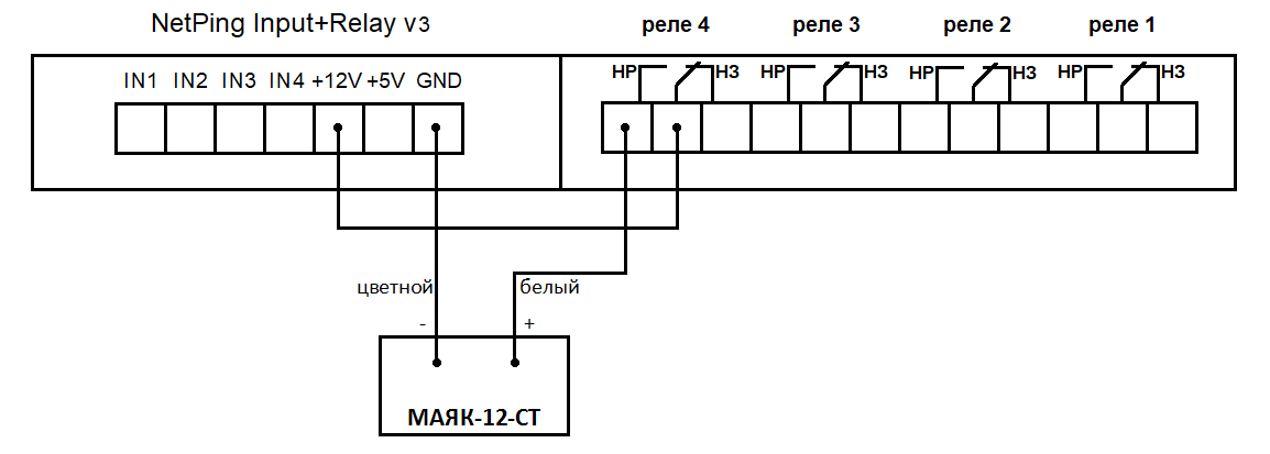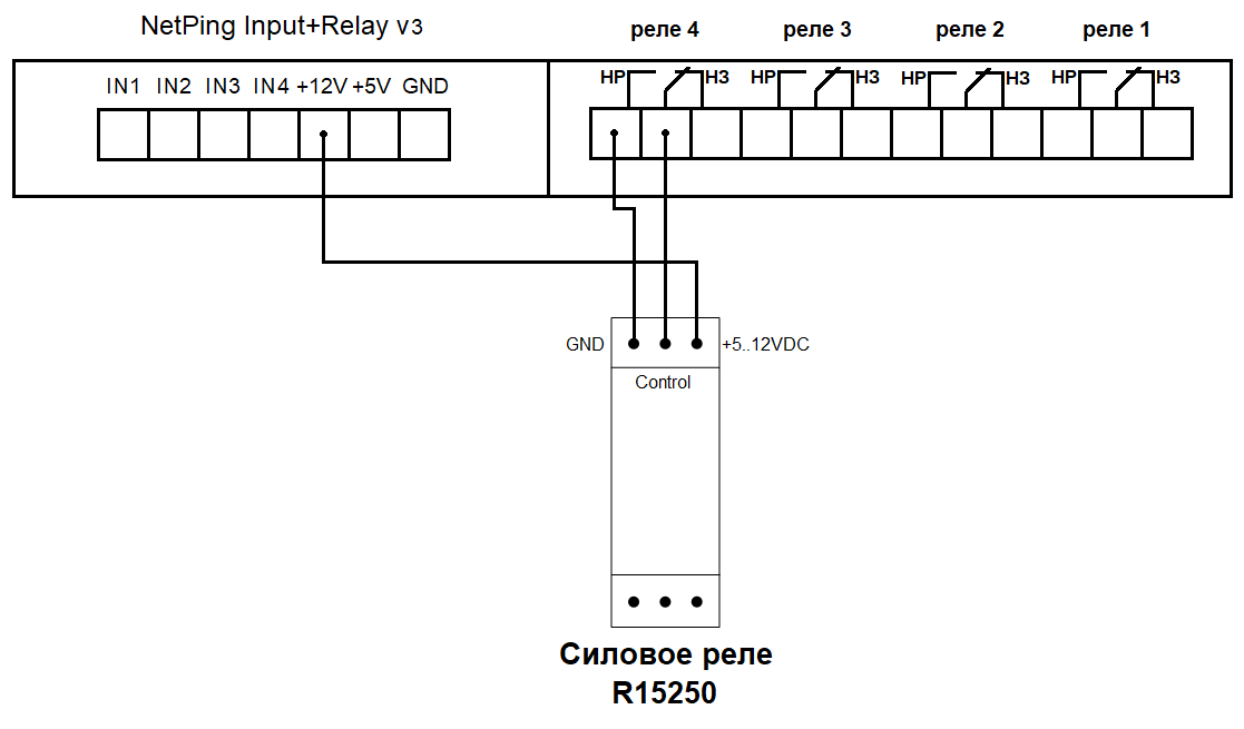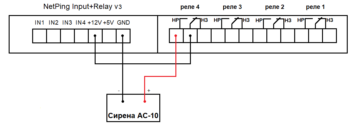 При подключении NetPing AC/DIN к реле: