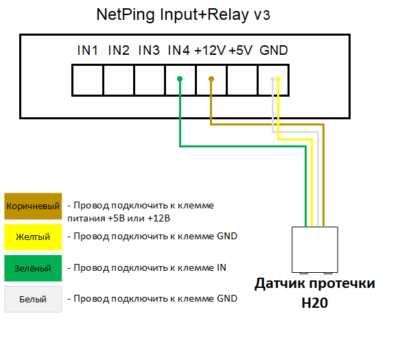Датчики и иные источники сигнала, которым не требуется дополнительное питание или они запитаны от иных источников питания и оно развязано с сигнальной линией, подключаются к клеммам IN и GND устройства. Полярность подключения не важна, если иное прямо не указано в документации к датчику.