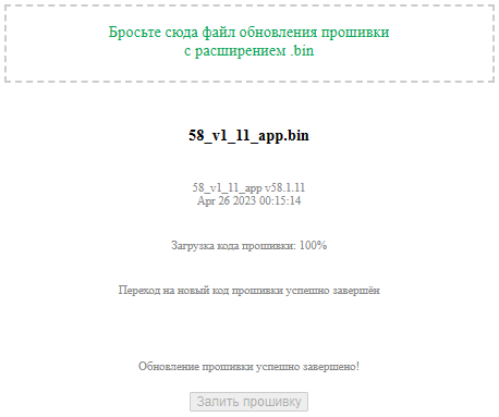 Дождитесь окончания процесса обновления ПО и появления надписи «Обновление прошивки успешно завершено!».