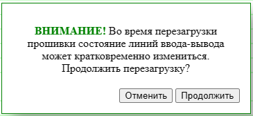 Система выдаст информационное сообщение с подтверждением о рестарте прошивки.