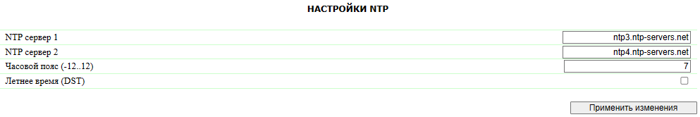 Устройство может работать с двумя NTP-серверами. Если первый NTP-сервер недоступен, устройство попытается синхронизировать время с помощью второго.