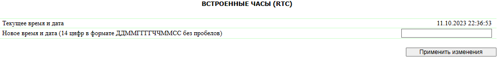 Новое время и дата (14 цифр в формате ДДMMГГГГЧЧММСС без пробелов) — поле для установки нового времени вручную.