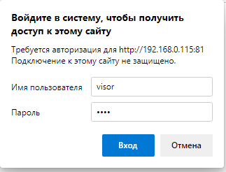 При подключении к веб-интерфейсу устройство выдаст запрос на авторизацию путем ввода логина и пароля.