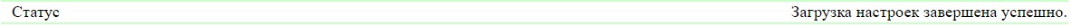 После этого следует выбрать нужный файл формата .bin для загрузки конфигурации. Успешная загрузка сопровождается отображением статуса «Загрузка настроек завершена успешно» с последующей перезагрузкой устройства: