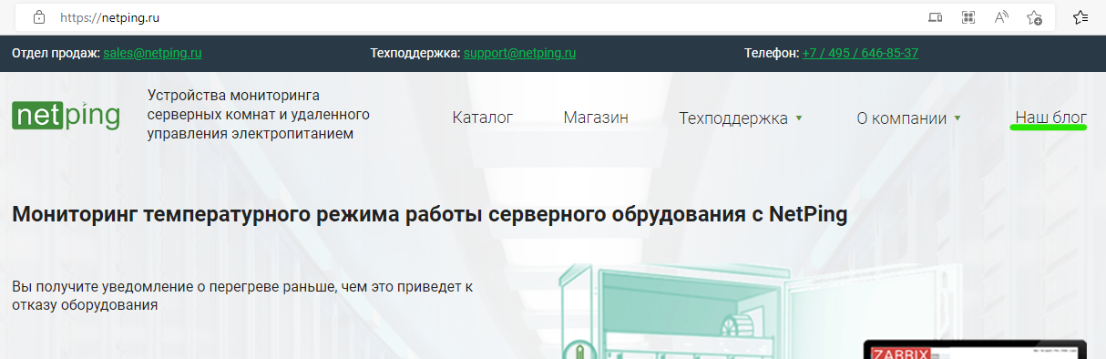 Пример автоматизации админских задач в серверном шкафу/комнате на основе Zabbix и NetPing - NetPing