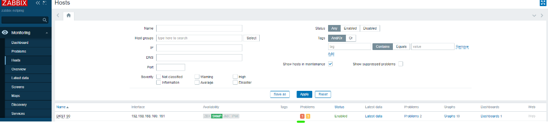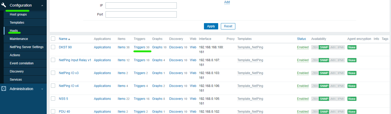 Перейдите в: Configuration → Hosts