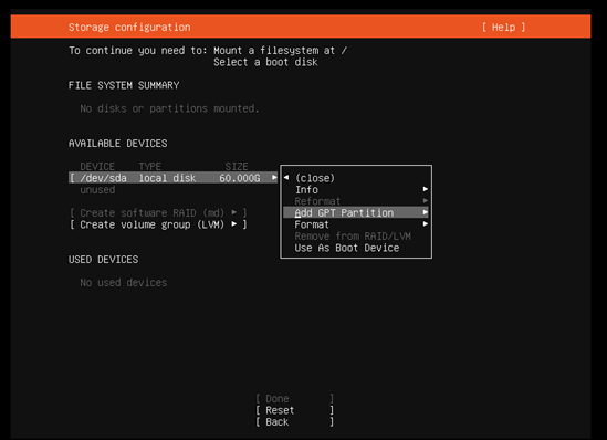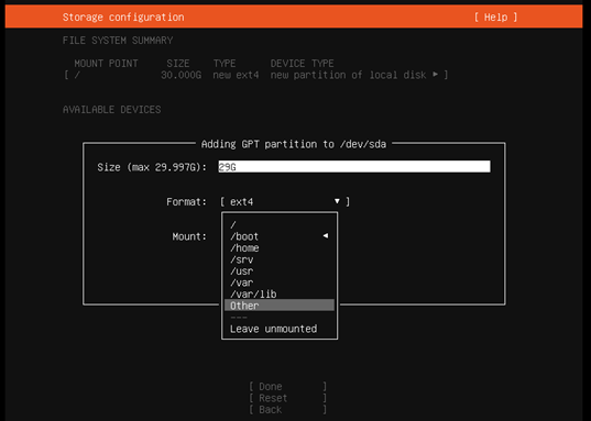 указываем размер и выбираем точку монтирования (пункт «other»);