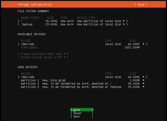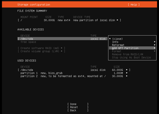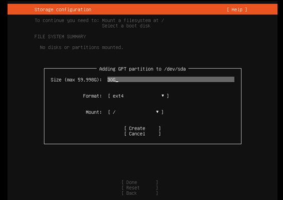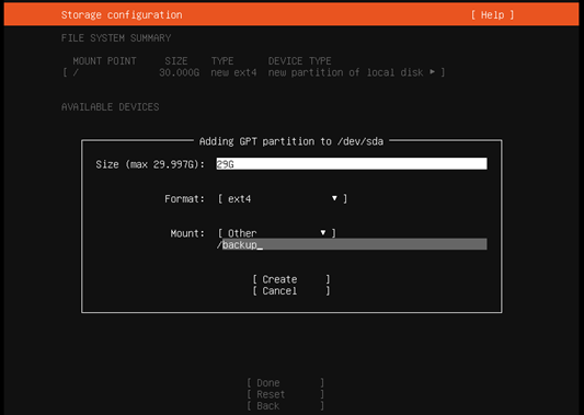 Устанавливаем размер корневого раздела равным 30G (30 гигабайт);