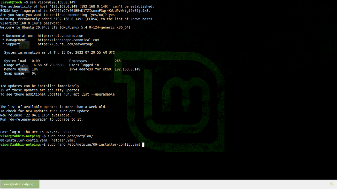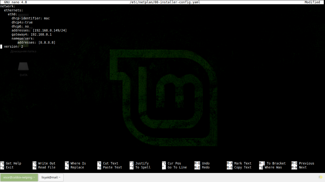Далее нажав «Ctrl+x» и «y» сохранить файл (при использовании редактора «nano»), после чего выполнить команду «sudo netplan apply», проверить настройки можно командой «ip a»