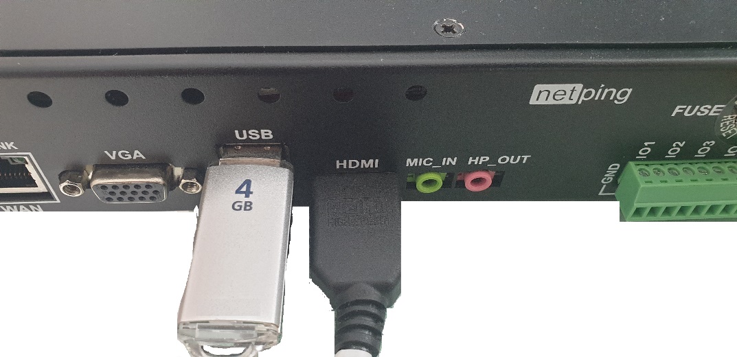 Подключите к устройству монитор и USB клавиатуру для первичной настройки и обновления ПО устройства (usb накопитель с образом системы при необходимости). Также при подключении ethernet на окне приветствия будет доступен IP адрес устройства.