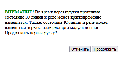 Система выдаст информационное сообщение с подтверждением о рестарте прошивки.
