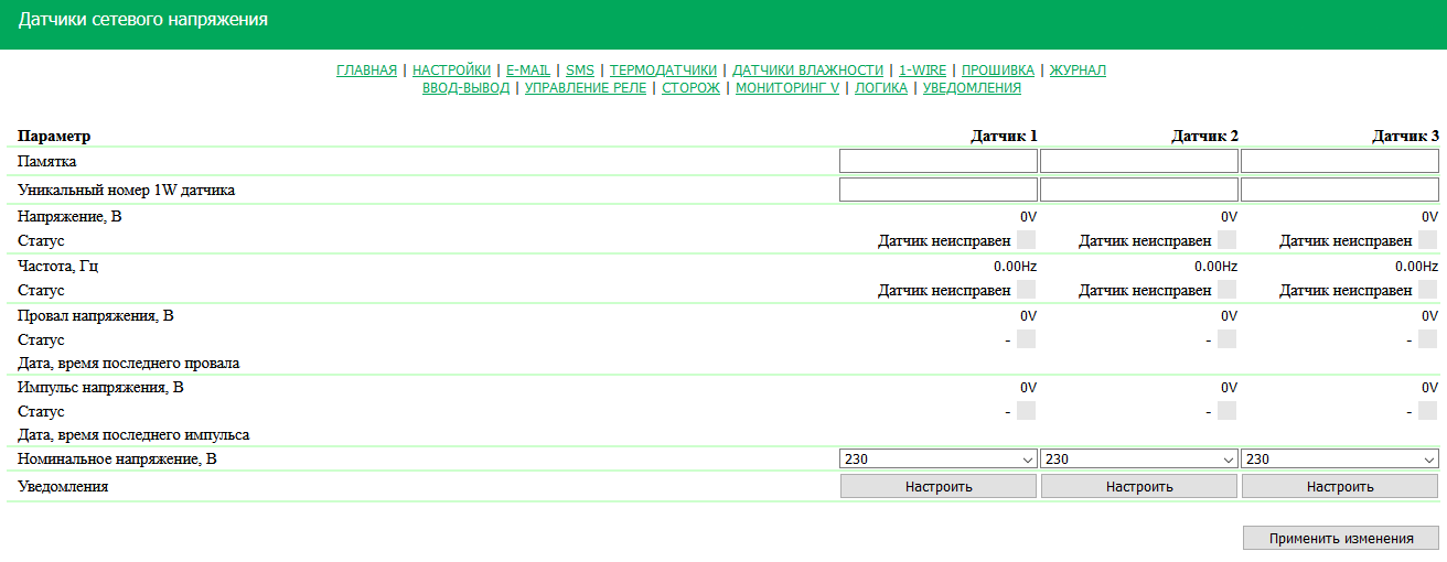 Изменение статуса импульсов напряжения — отправка уведомлений при изменении импульсов напряжения. По умолчанию: чекбокс не установлен.