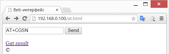 Для получения IMEI (международный идентификатор мобильного оборудования) встроенного GSM-модема необходимо зайти на служебную страницу web-интерфейса устройства по адресу: http://netping_ip/at.html
