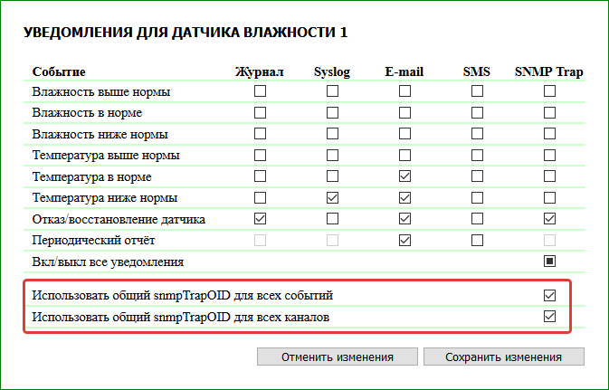 snmpTrapOID npRelHumTrap (SNMP TRAP-сообщения при изменении статуса влажности)