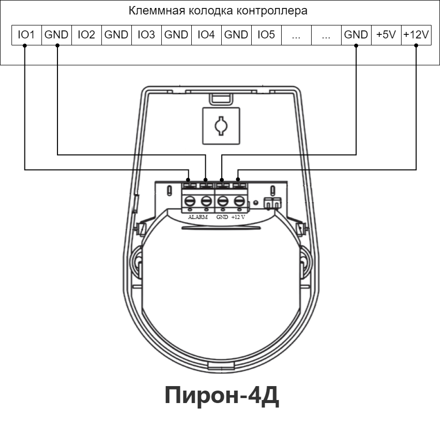 Датчик представляет собой «сухой контакт», поэтому порядок подключения проводов не имеет значения. Количество подключаемых датчиков ограничено только количеством свободных линий IO.