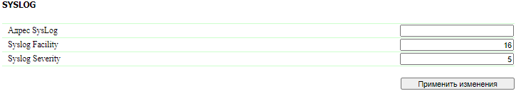 Адрес SysLog — IP-адрес SYSLOG-сервера; журнал устройства будет полностью дублироваться на SYSLOG-сервере;