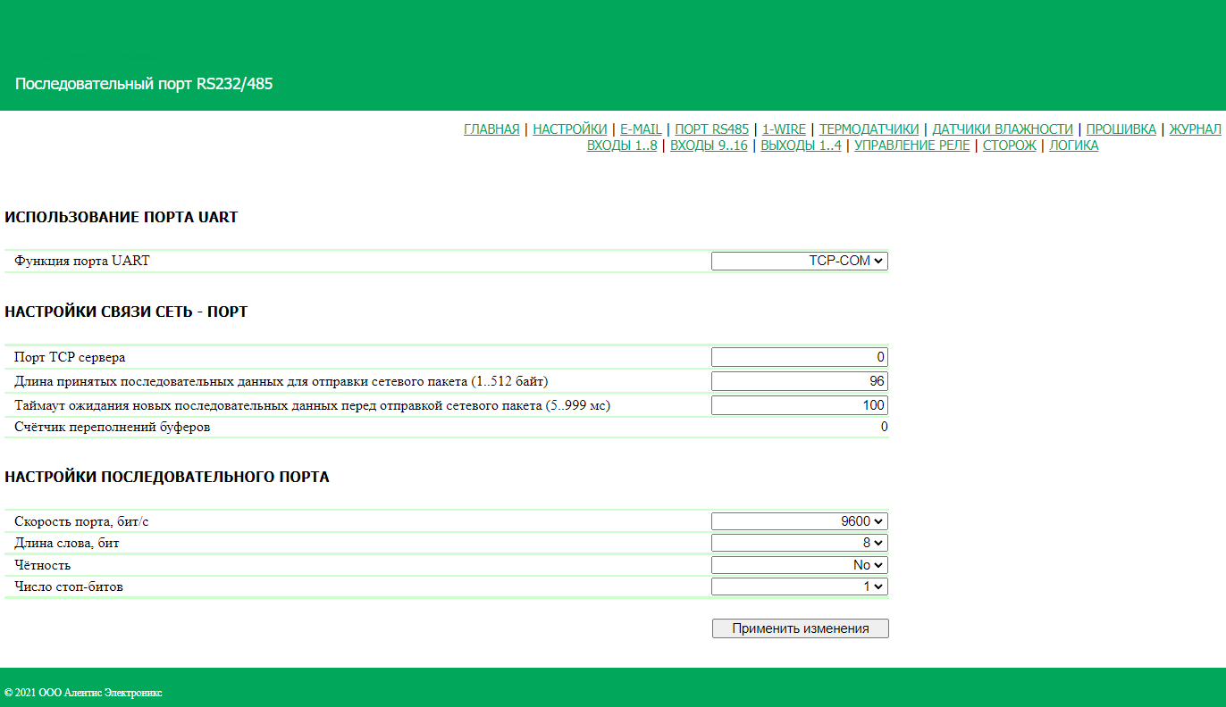Назначение интерфейса - туннелирования порта RS-485/232 через сеть TCP/IP.